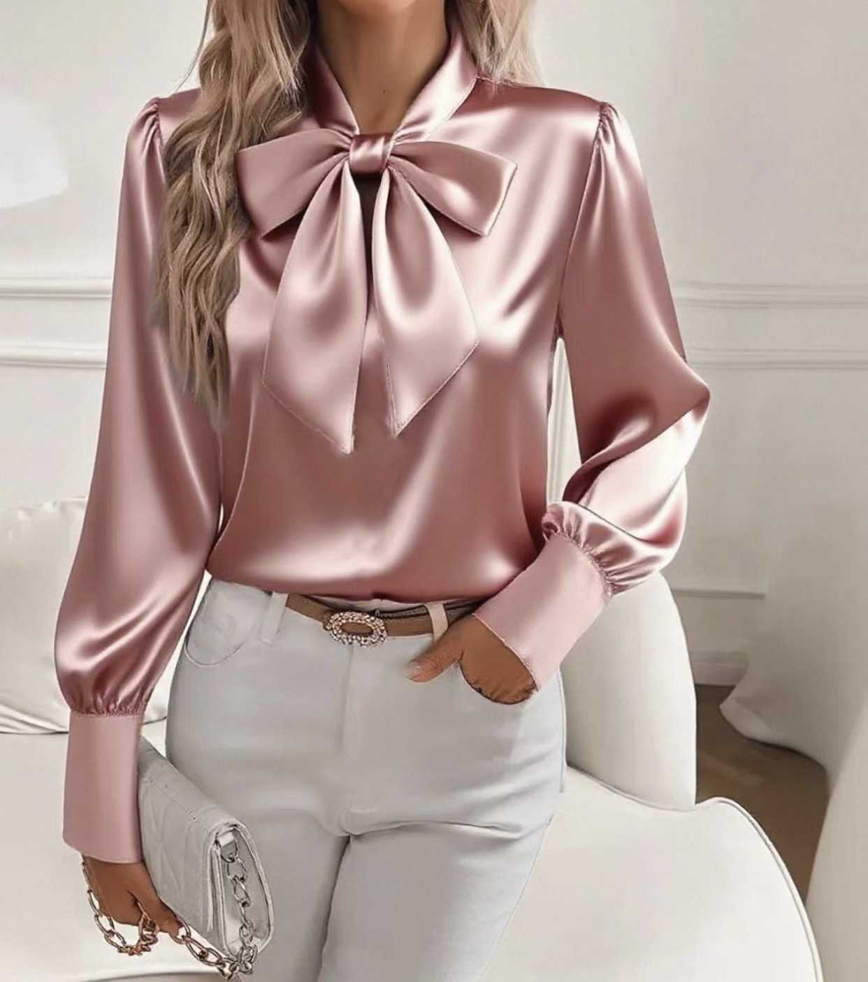✅Универсален стил : Носете с вталени панталони за професионална визия или с дънки за шикозен тоалет за уикенда, сатенената риза Adelinde лесно се адаптира към различни стилови опции. Тя е перфектната дреха за преход.